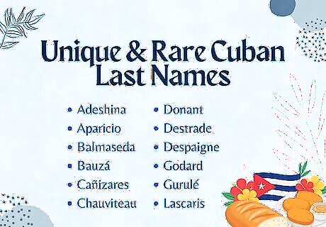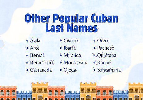 Less common surnames are influenced by France and West Africa. Since Cuba is a hodgepodge of cultures, not every name originates from Spain. In fact, there are various well-known families with French, African, and Arabic origins. In fact, it is believed that over 4,000 Spanish words have been derived from Arabic, including “arroz,” meaning “rice,” and “limón,” meaning “lemon.” Here are some less common surnames that also make a cultural splash: Adeshina (ah-deh-shee-nah): From Yoruba in West Africa, meaning “crown opens the way.” Fun Fact: Remigio Herrera Adeshina was a famous Cuban Yoruba priest. Aldana (all-dah-nah): This name describes a place by a hill or slope. Fun Fact: King Thedrick’s heirs were thought to have settled “The House of Aldana” near Santiago de Compostela, Spain. Aparicio (ah-pah-ree-cee-oh): Meaning “ghost” or “apparition.” Fun Fact: Mexican actress Yalitza Aparicio is a bearer of this name. Armenteros (arr-men-teh-roz): Meaning "herdsman" or "someone who tends to livestock.” Fun Fact: Cuban pro baseball player Rogelio Armenteros is a famous bearer of this name. Ascencio (ah-sehn-see-oh): Meaning “ascension.” Fun Fact: This surname is thought to have originated among Christians to allude to the ascension of Christ. Ayala (ah-yah-lah): Basque in origin, meaning “pasture by the hill.” Fun Fact: There have been many famous athletes bearing this name, like Bobby Ayala and Roberto Ayala. Avellaneda (ah-veh-ya-neh-dah): Loosely meaning “hazelnut forest.” Fun Fact: Avellaneda is the name of a city in Argentina. Balmaseda (ball-mah-seh-dah): Meaning “valley of vineyards.” Fun Fact: This is also the name of a town in Spain. Basílio (bah-see-lee-oh): Derived from Greek, meaning "royal" or "kingly.” Fun Fact: Brazilian guitarist Lari Basilio is a famous bearer of this name. Bauzá (ba-oo-zah): Likely from Catalan, meaning “silly” or “foolish.” Fun Fact: This name is most commonly found in the Balearic Islands, an archipelago off the coast of Spain. Borges (bore-jes): Means “of the town,” Fun Fact: Argentine poet and author Jorge Luis Borges was a pioneer in international literature. Borja (bore-ja): Derived from Arabic, meaning “tower.” Fun Fact: The Borja family, also spelled “Borgias,” was a powerful Italian-Spanish noble family that heavily influenced European culture and politics in the 15th and 16th centuries. Bosch (boh-sh): Likely derived from Catalan, meaning “forest.” Fun Fact: Orlando Bosch Ávila was a Cuban political figure who opposed Fidel Castro’s revolution. Cañizares (cah-gni-zah-res): Meaning “person who lives by the tall grass.” Fun Fact: Alejandro Cañizares is a professional Spanish golfer. Céspedes (says-peh-des): Pural of “Césped,” meaning “peat.” Fun Fact: Carlos Manuel de Céspedes y Quesada was the 6th President of Cuba. Chauviteau (shoh-vee-to): Derived from French; likely a variant of “Chauvet.” Fun Fact: A popular restaurant on the French island of Île d'Yeu bears this family name. Crombet (chrom-bet): From Old French, meaning “little raven” or “little crow.” Fun Fact: Flor Crombet was a beloved patriot and an instrumental figure in the Cuban War of Independence. Donant (doh-nahnt): From Gaelic, meaning "descendant of Donnán." Fun Fact: There is a sizeable population of Irish descendants in Cuba, ranging from 40,000 to 50,000 people. Delfín (delle-feen): Meaning “dolphin.” Fun Fact: Mexican diplomat Remigio Delfín is a famous bearer of this name. Destrade (des-trah-deh): Meaning a “destined” or “paved path.” Fun Fact: Cuban MLB player Orestes Destrade played for the Yankees and the Pittsburgh Pirates. Despaigne (deh-spain): Means “Of Spain.” Fun Fact: Cuban baseball player Alfredo Despaigne Rodríguez is currently an outfielder for the Alazanes de Granma in Cuba. Godard (goh-darde): Derived from Germanic, meaning "good,” “strong,” or “brave.” Fun Fact: Neville Goddard was a Barbadian writer and spiritual leader, offering self-help practices via the law of assumption. Gurulé (goo-rool): Likely from the French “grol,” meaning “crow” or “jackdaw.” Fun Fact: This surname is thought to have emerged when Frenchman Jacques Grole was forced to change his name to Santiago Gurulé after being captured during the La Salle Expedition of 1685. Lascaris (lass-cah-riz): Derived from the Byzantine-Greek language, meaning “warrior” or “soldier.” Fun Fact: The Lascarises were a powerful royal family that ruled the Empire of Nicaea in the 13th century. Lafargue (lah-farg): From French, meaning a “weaver” or “tailor.” Fun Fact: Paul Lafargue was a Cuban-French political activist, Marxist, and writer. Lafleur (lah-flurr): From French, meaning "the flower." Fun Fact: Canadian hockey player Guy Lafleur is in the Canadian Hockey Hall of Fame. Laurier (lah-ree-eh): From French, meaning "laurel.” Fun Fact: Sir Wilfrid Laurier was the 7th Prime Minister of Canada. Lebourgeois (leh-booge-juah): From French, meaning “the citizens." Fun Fact: Louise Bourgeois was a French-American painter, sculptor, and all-around artist. Leblanc (leh-blanque): From French, meaning "the white one." Fun Fact: American comedic actor Matt LeBlanc is a famous bearer of this name. Lefevre (leh-fev-reh): From French, meaning "the blacksmith." Fun Fact: Henri Lefebvre was a French philosopher and famous bearer of this name. Milian (mih-lee-ahn): Likely deriving from Latin, meaning "rival." Fun Fact: Singer-songwriter Christina Milian is a famous bearer of this name. Piquet (pee-que): From French, meaning “small stake” or “small post.” Fun Fact: Nelson Piquet is a Brazilian Formula 1 driver. Sarria (sah-rree-ah): Derived from Basque or Catalan, meaning “place of the willows.” Fun Fact: José Sarria was a famous LGBTQ+ rights activist and drag queen. Sierra (cee-eh-rah): Meaning “saw-toothed mountain range.” Fun Fact: L