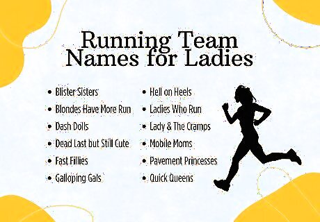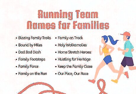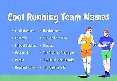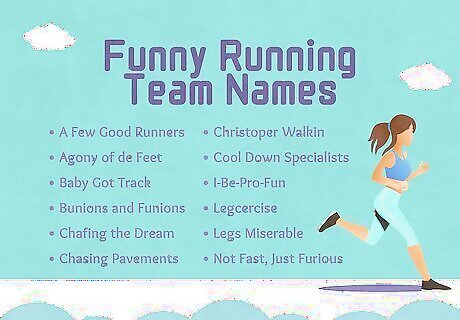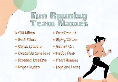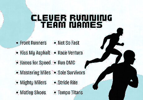Choose a vibe and play around with running-related terms. Do you want to intimidate other teams? Make everyone laugh? Or let people know you’re just playing for fun? Think of your team’s vibe and energy, then get your creative juices flowing! Think of running terms, such as “cadence,” “form,” “marathon,” “strides,” “tempo,” “pace,” “BPM,” “fartlek,” or “split,” and experiment with alliteration, rhyming, and wordplay for a fun and unique name. Make sure your team name is easy to say and understand to avoid confusion. If you need extra help, you can always use our team name generator for unlimited ideas!