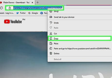 Copy the video's address. Highlight the video's URL in the address bar at the top of your browser, then press Ctrl + C (Windows) Command + C (Mac) to copy it.