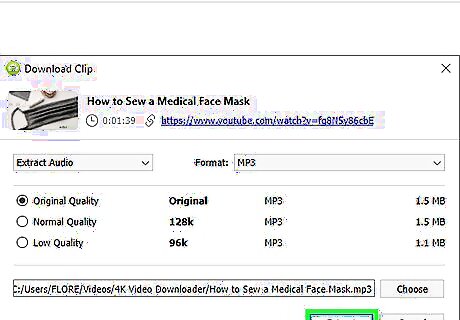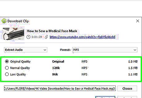 Select a quality (optional). The highest quality will be selected by default, but you can change the quality and bitrate of the audio file by checking the box to the left of one of the options in the window. Choose a lower bitrate if you want the file size to be smaller.