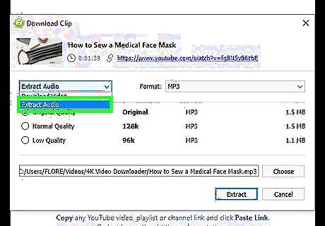 Click the "Download Video" drop-down and select Extract Audio. It’s the menu near the top-left corner of the window. If you want to download the video, select Download video instead.