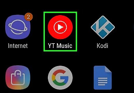 Open the YouTube Music app on your mobile device. It’s the rectangular red icon with a play icon (a sideways triangle) inside.