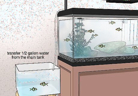 Siphon water with the tubing. Siphon the tank water again, this time into the container with the fish. Let it fill up until you've transferred ½ gallon (2 liters) of aquarium water.