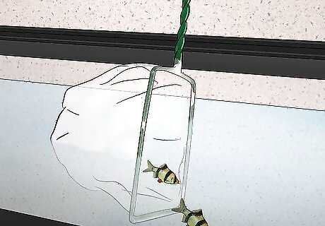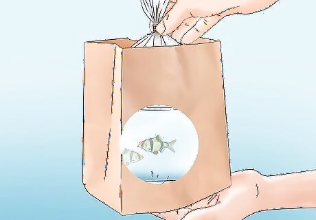 Place the fish in a separate container. Stand the bag in a fish-safe container that holds ½ to 1 gallon (2–4 liters). Gently pour the water and fish from the bag into the container. If the water would be too shallow for the fish, just stand the open bag upright with the fish inside.