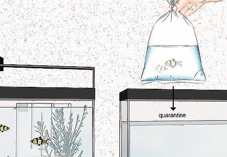 Transfer the fish with a net. Do not pour any water back into the tank, as it may contain undesirable substances or organisms from the pet store.