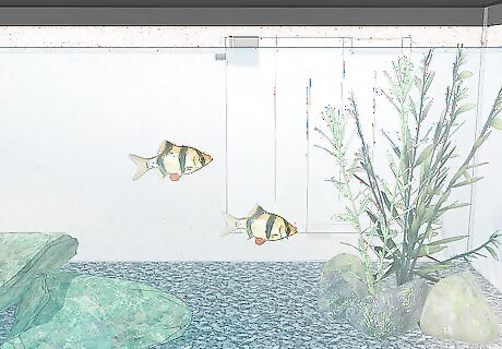Prepare your tank. If it's a brand new tank make sure the filter has been running for at least a week, preferably two weeks, so enough bacteria builds up in the filter to process nitrates (for small fish tanks a nitrite peak builds up after around 10 days). Add all the ornaments/gravel and plants before you put in the new fish. Aquatic plants (if any) need time to build up roots and get used to the tank too. Fertilisers and possible dirt in the gravel have to set on the floor and break down. Put in the correct amount of tap safe or chlorine inhibitor for the amount of water in the tank. If you are adding the fish to an existing tank, rearrange the decorations. This will break up the territories of other fish, reducing the potential for aggression toward the newcomer.