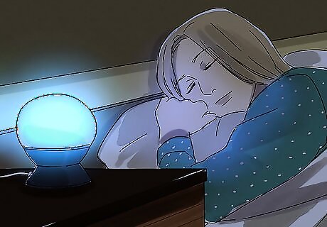 Use nightlights. Nightlights are small and bright, making it easy to see and roam around. You may want to consider placing a nightlight in the bathroom, hallway, and in your bedroom. Some type of nightlights you may consider picking out are: Wireless nightlights. These nightlights are easy to move around to the places that need light without a cord or plug. Switchable nightlights. These nightlights are easy to plug in without a cord or plug, making them small, mini lights for places like your bedroom or hallway. Lava lamps. These nightlights are shiny and bright, helping you to identify where you are, and are perfect fits for a bedroom. Plasma lamps. Just like the lava lamps, this nightlight is shiny and bright, and is a good keep to place in your bedroom to help you see better. The light provides many colors and movement so it's easy to identify clearly.