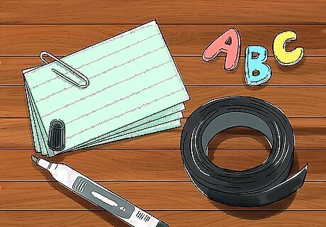 Find certain tools that can help you organize and label. Pick out tools and materials that make organizing and labeling easier for you. You may want to consider getting: White 3 x 5 inch index cards Jumbo colored paper clips Colored adhesive labels Colored electrical or plastic tape Wide-tip markers Flair felt-tip pens Laundry markers Hook-and-loop fastener Foam alphabet letters Self-stick magnetic tape