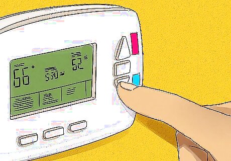 Mark the thermostat with brightly colored tape. Using brightly colored fluorescent tape, tape small strips of tape on the settings you typically use. This can prevent you from mistakenly changing the temperature up to high or too low. You can also stick strips of tape near the spots that you do not usually use. That way when you try to place the thermostat on you'll know what not to click.