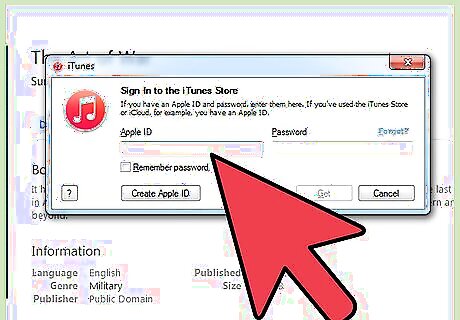 Type in your "Apple ID" and "Password" into the designated fields to verify your purchase of the book and begin its download. iTunes will then download the book directly into your iTunes library.