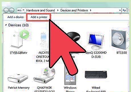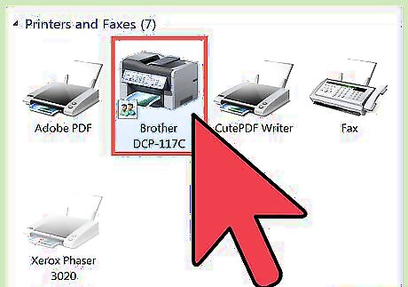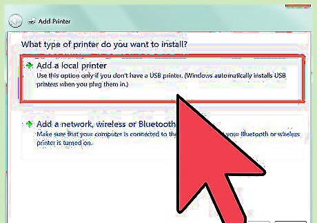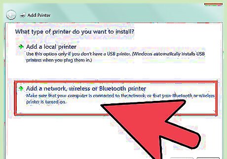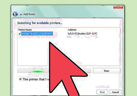 Establish a connection between the network and the laser printer. Now that a physical connection between the device and the router or hub has been made, it is possible to add the laser printer to the home network. Open the control panel from the Start Menu options and click the Printers icon to open the Printers folder. Double-click the "Add a printer" option located in the toolbar. The Add Printer dialogue box will open. Click on "Add a network, wireless or Bluetooth printer," and click Next. Select the newly connected device from the options listed and click Finish. The laser printer has been added to the network.