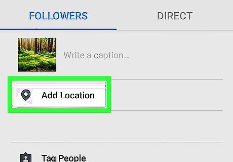 Tap Add Location. It’s right beneath the caption box. If you see the location you want to add beneath this button, you can simply tap that instead.