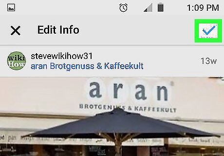 Tap the check mark. It’s at the top-right corner of the screen. The location is now added to your photo or video post.