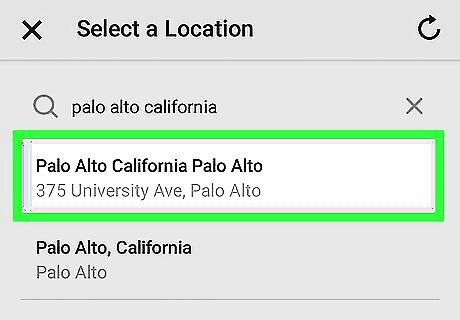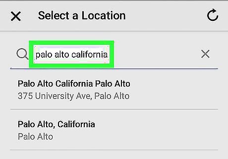 Select a location. Type your location into the search box at the top of the screen, then select it when it appears in the search results.