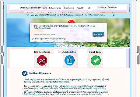 Register with FEMA Disaster Assistance as soon as possible. Go to https://www.disasterassistance.gov/ and enter your city and state or ZIP code to find out if your neighborhood has been declared a federal disaster area. If so, you can apply for assistance from FEMA, including temporary housing. When you register your address, you will see a list of different types of assistance that are available to you. If there is a housing option, click on it to apply for temporary or emergency housing through FEMA. If you were a homeowner and your primary home was damaged or destroyed, you might also be eligible for grants to cover repairs and other expenses not covered by your homeowner's insurance.