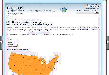 Learn about available options from a HUD-approved Housing Counselor. Housing counselors know all about available resources in your area to secure interim housing. They can connect you with government programs as well as opportunities offered by nonprofit organizations that might benefit you. To find a counseling agency near you, go to https://apps.hud.gov/offices/hsg/sfh/hcc/hcs.cfm?weblistaction=summary and click on your state on the map. You can also select the name of your state from the drop-down menu above the map. When you click through, you'll find the names and contact information for agencies in your state.