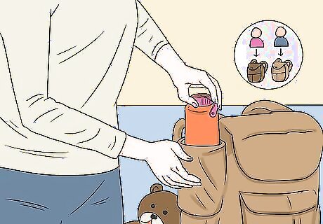 Pack a bag for each member of your family if possible. If you have the time to do so safely, gather some basic clothes and important items for each family member. Try to leave some room for a comfort item, such as a pillow, blanket, or even a beloved stuffed animal – you never know how valuable that might turn out to be. If you or anyone in your family has a health condition or is currently taking prescription drugs, make sure you have the drug with you, especially in a disaster situation. It may be a while before you can get a prescription refilled. Gather important documents for each family member, including birth certificates and wedding certificates or divorce decrees. If you don't have time to get these documents, at least make sure you have a valid, government-issued photo ID, such as your driver's license or a passport.Tip: If you live in a disaster-prone area, make a "Go Bag" for each member of your family. Include essential survival tools as well as identification and medical information.