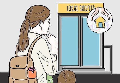 Locate shelters with vacancies in your area. In a natural disaster, look for Red Cross or Salvation Army tents. They will be able to help you find an active shelter. In other situations, call your state's family or social services agency. Caseworkers will be able to help you find a shelter and other assistance. If you are in a natural disaster area and have a working phone, you can also text SHELTER followed by your zip code to 4FEMA to get a list of shelters near you, provided by the Federal Emergency Management Agency (FEMA). First responders will also be able to give you information about where you can find immediate shelter.