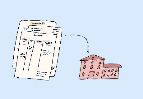Send your high school transcripts to potential schools. Colleges and universities require official transcripts, which usually need to be sent by an administrator at your high school. Policies vary, but guidance counselors often arrange for transcripts to be sent to potential colleges. Check schools’ admissions websites for specifics on the submission process. You may need to download a transcript request form from a school’s website and give it to your guidance counselor. Alternatively, your guidance counselor or school administrator may only need to mail or upload your transcript. Your transcripts will only show your grades up to the last full term you completed. However, your high school will send a final transcript to your college of choice, so keeping your grades up is still important. Don’t slack off the rest of your senior year! If you're returning to school as an adult, ask schools' admissions programs to help guide you through the application process. In lieu of transcripts, you may be able to take a standardized test or ask schools to take your work experience into consideration.