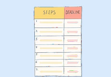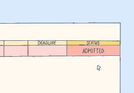 Map out the application process with a timeline. At the end of junior year or over the summer, make a list of all the steps you'll need to take during the application process. Maintaining a bird's-eye-view over these tasks can prevent you from getting overwhelmed help you avoid missed deadlines. For an example timeline, check out https://bigfuture.collegeboard.org/get-in/applying-101/timeline-12-grade. Sample Timeline: 1. Narrow list of colleges to between 5 and 10. Deadline: October 15.2. Ask 2 to 3 teachers for letters of recommendation. Deadline: October 31.3. Write first drafts of application essays. Deadline: October 31.4. Arrange for transcripts to be sent to colleges. Deadline: January 15.5. Complete the Common App and school-specific forms. Deadline: January 15.