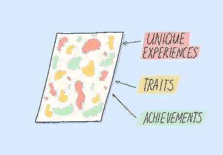 Write application essays on a unique experience, trait, or achievement. Writing a college application essay may seem daunting, but try to see it as a fun opportunity to express yourself. Review the requirements for each school; your essay may be open ended, or you may be asked to respond to a specific prompt. You’ll probably be limited to 1 page or less, so focus on a specific topic that helps you stand out from the crowd. For instance, you could write about an obstacle you overcame or a trip that changed your view of the world. Just keep in mind the most important thing to be authentic and offer insight into who you are as a person. Keep in mind you may need to write multiple essays in response to each application's prompt.Tip: Have your guidance counselor, at least 1 English teacher, and family members read your essays. Ask them for feedback on the content and to proofread for errors. It’s crucial that your writing is free of spelling and grammatical errors.
