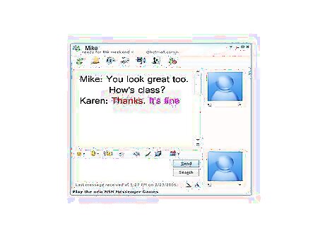 If you both have cell phones, start texting each other throughout the day. Let them know that you're thinking of them at random times. Be wary of giving out any information to the person that they can use to find you before you both decide to meet up in person. Texting allows you to keep communication open with the person while at the same time you're letting them know that you're not just sitting at home waiting for them to go on Facebook or MSN during your every spare minute. Have fun with the texting, send each other pictures of yourselves.