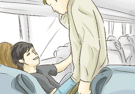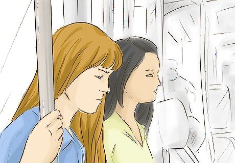 Change seats. In case someone is downright rude and refuses to respect your wishes to be left alone, relocate somewhere else. At the next stop, walk over to the opposite side of the vehicle and sit there. If the person is making you uncomfortable or seems like they might follow you, this would be a good time to sit near someone else, just in case. This is a last resort. It shouldn’t generally be necessary unless someone is really giving you a hard time. If they are bothering you and won’t stop, consider calling someone for help or leaving the vehicle at a stop where there are lots of people around. Your safety is most important.