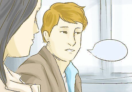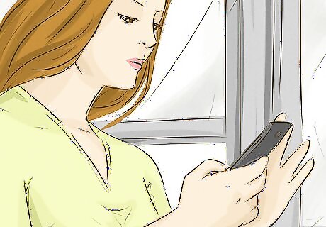 Look at your phone. If you are busy texting someone or using an app or checking social media on your phone, you will be looking down and avoiding strangers. If someone does interrupt you, you can give a quick answer, like “yes,” and then get right back to your phone to show that you aren’t available to talk.