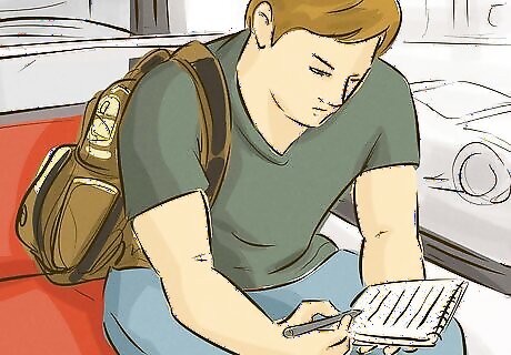 Write. Bring a notebook and spend time journaling or writing. You could also type something on your computer or tablet. This will help ward off unwanted conversation because it shows people that you are busy and are working on something. It will also help you to avoid eye contact. If someone does try to ask you about your writing, you can say something like, “I’m writing a piece for my class and I really need to finish it.” They will likely let you get back to your work.