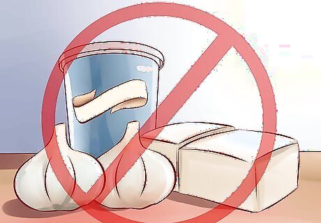 Avoid foods that can increase levels of estrogen. During pregnancy, levels of the female hormone estrogen rise in order to help the body build tissues for both the mother and the fetus. As you are trying to avoid excessive production of estrogen, it is best to avoid foods rich in estrogen such as tofu, flaxseeds, soybeans, soy yogurt, sesame seeds, multi-grain bread, hummus, garlic and dried apricots.