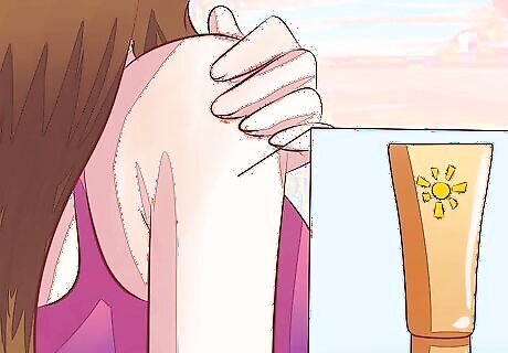 Wear sunscreen. Go for sunscreen with a minimum sun protection factor (SPF) of 30. Sunscreen should be applied every day, regardless of the weather. Even on a cloudy day, the sun’s UV rays can still affect your skin and initiate melanin production. The SPF level is a measurement of how much a particular sunscreen will be able to protect your skin. This is because the sun emits radiation as well as heat. This radiation will not only cause skin pigmentation, but also sunburn, skin and eye damage, skin aging, and even skin cancer. As a general rule, SPF 15 can protect your skin for 2 hours, SPF 30 for 4 hours, SPF 60 for 8 hours and so on.
