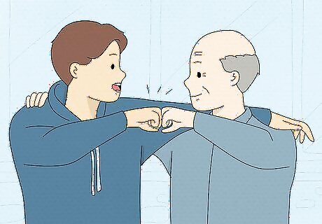 Stand up for them in awkward situations. As the older brother or older sister, you should watch out for younger sibling and stand up for them if they get into any awkward or sticky situations. This may be confronting the school bully if they start to pick on your sibling or mediating a fight between your sibling and your parents. Try to stay on your sibling's side and work with them to resolve any problems or issues with others. Having your sibling's back will show them that you are willing to be there for them and support them.