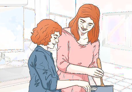 Be an emotional support. Being a role model may also mean giving your support and undivided attention when you're available and able to do so. Some young kids may have difficulty coping with stressors at school or at work. Focus on what they need and talk about what's bothering them. Use active listening skills. Keep good eye contact. Provide validation if they're talking about something difficult for them. Consider saying, “It sounds like that's difficult” or “That's a tough situation.” Provide reassurance that they have support through you and others. Open up about what you can do to help or what support you can offer. Consider saying, "I know you're going through a difficult time. Just know that I'm here for you. You can come to me if you need to talk about anything." Give hugs when they're hurting. Give high-fives when they do something well. This helps to build their confidence.