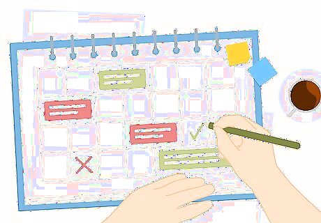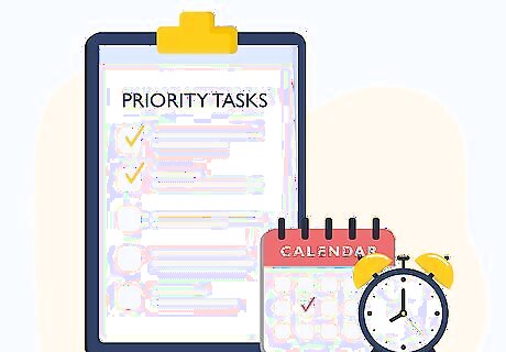 Schedule activities and appointments. Some people schedule only meetings, but not activities on their to-do list. Scheduling the most important tasks as well as appointments can be helpful. You might also “batch” your days by having meetings only on Tuesdays and Thursdays, for example. Keep some holes in your schedule as well for creative time to yourself or to accommodate the unexpected. Use an organizer and calendar. These can be pen-and-paper organizers, or they could be software-based calendars and personal assistant apps, such as iCalendar or Google Now. Categorize your activities. Categorizing or color-coding activities can give you a quick visual reminder of what’s important where. For example, categories might include correspondence, projects, events, meetings, brainstorms, and even breaks or exercise and gym time. Streamline your technology. Online organizers and email platforms such as Outlook, for example, can combine your to-do lists, calendars, and addresses. This not only boosts your efficiency but helps streamline your thinking. Delegate wherever possible. In the madness of the workday, it’s easy to forget that you don’t have to do everything yourself. Delegate to an assistant or, if you’re particularly swamped, ask a colleague to do you a solid and help you with a particular task. You can always repay them later when things slow down.