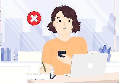 Limit interruptions. While strategic breaks are helpful, interruptions during your work times are not. Interruptions can slow you down, break up your work rhythm, and make you lose your train of thought. So, try using away messages and voicemail when you know you’ll be too busy. These tools aren’t just for when you’re not physically in the office; they can be used when you’re just too swamped. Many people also have an “open-door policy,” but you don’t actually have to keep your door open at all times. You might even leave a friendly note on the door saying, “Conference Call in Progress” or “Occupied. Drop back later or email please.”