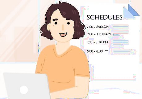 Determine your productivity times. Some of us are morning people, and some of us cringe at the idea of mornings. You might already have a sense of what times of day you’re most productive. Whether you prefer evenings, mornings, lunchtime, or right before or after workday rush hours, take advantage of those times to maximize your productivity.