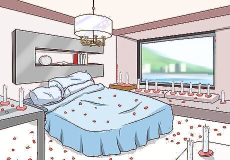 Create a romantic atmosphere. Think about intimacy as not just about sex. Think about how you can create a romantic place for intimacy to develop. Make your private spaces more welcoming for love. Consider making the bedroom a more romantic place. Remove clutter like piles of laundry. Use candles or music to set the mood. Make it a space of relaxation. Give each other a massage.