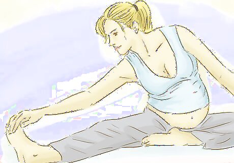 Exercise regularly. Unless you’re experiencing complications, you should be regularly exercising throughout your pregnancy. Exercise helps to reduce your risk of some complications, lift your mood and energy levels, prevent excess weight gain, and improve sleep. Pregnant people should moderately exercise at least 30 minutes most days of the week. Talk with your doctor about your exercise routine. They may recommend that you not exercise if you are having medical complications, like anemia or preeclampsia. If you didn’t regularly exercise before your pregnancy, you should begin with as little as five minutes of exercise a day and gradually increase the duration until you reach 30 minutes a day. Avoid jumping straight into HIIT exercises or high impact exercise due to the pressure on your abdomen and pelvic floor. If you engaged in that type of exercise before, dial it down and dial it down as your pregnancy progresses.