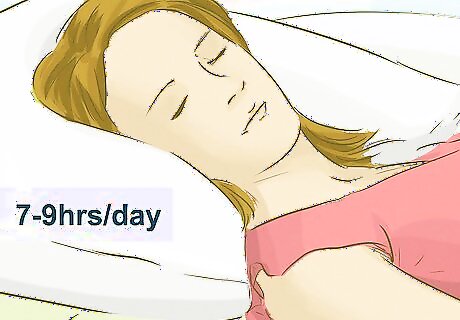 Get enough sleep. Sleep is very important during your pregnancy, but some pregnant people find it more difficult to get a restful night’s sleep. Research has shown that those who sleep less than six hours a night are significantly more likely to have more difficult deliveries or have a Cesarean sections than those that sleep seven or more hours a night. Try to sleep at least seven hours a night, and to nap as frequently as you need. Try to keep your exercise, caffeine consumption, and naps earlier in the day to help fall asleep more easily.