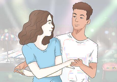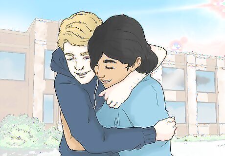Hug each other often. When you first see each other in the morning, make a habit of giving each other a big, long hug. People will start to notice this as your morning routine. Hug each other in between class and anytime you leave each other for the day. Go out of your way to hug each other and let people see you hugging. Hug each other for longer than you ever hug someone who is just a friend.