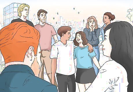Mingle as a couple at parties. When you show up to a bonfire or weekly social event, stick together and mingle with the other guests as a couple. Rather than separating to find your own friends, sticking together shows you can still be a couple in a group of people. Visit groups of each person’s friends so that you both still get to talk to who you want to. It’s okay to split up and get a little alone time, but when you stay together it is easier for people to see how cute you are.