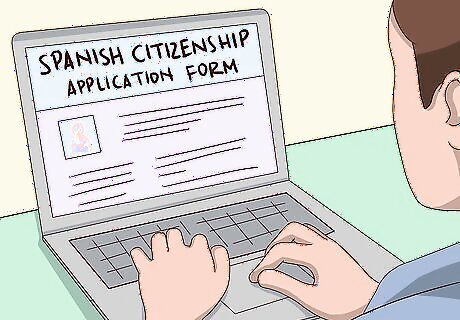 Fill out the Spanish citizenship application form. You can complete the form entirely online through the SEDE electrónica, or in-person at your local Civil Registry. Its questions are fairly straightforward: simply write down your name and information, plus why you’re applying for Spanish citizenship. Even if you fill out the form online, your Civil Registry will most likely contact you for an in-person appointment before your application materials can be approved.