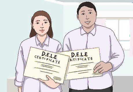 Take a DELE language exam and score a minimum CEFR A2 in Spanish. DELE, or Diplomas de Español como Lengua Extranjera, are permanently-valid diplomas issued by the Spanish government to people who pass a standardized language test. Unless Spanish is your first language, you’ll need to score at least an A2—“low intermediate.” You’ll be issued a certificate verifying your results, which you’ll need as part of your citizenship application materials. DELE offers exams 6-7 times per year, but you’ll have to register in advance https://examenes.cervantes.es/es/dele/cuando. The exam costs between 100€ and 200€ to take.