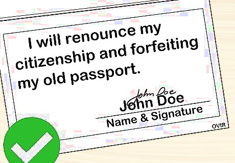 Renounce previous citizenship. Unless Russia has a dual citizenship treaty with your home country, you’ll need to renounce your previous citizenship. This includes filling out paperwork from the OVIR saying you renounce your citizenship and forfeiting your old passport. If you were previously a US citizen, you might be able to maintain dual citizenship. You’ll have to claim your US passport so Russian officials know you have one, but you won’t be required to give it up.