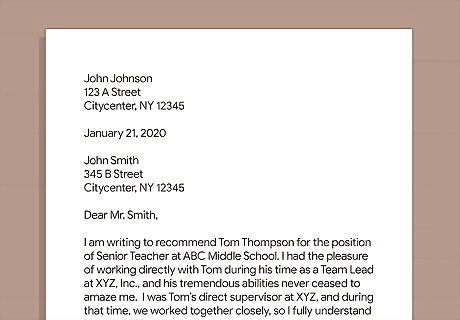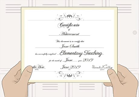 Get letters of recommendation from your mentor teacher and program. To demonstrate that you’ve completed the necessary training, get a letter of recommendation from your school or certification class. Then, get a letter of approval from your mentor teacher to demonstrate that you successfully completed student teaching. In the United States, you typically don’t need a letter of recommendation from your school or certification program. They’ll send the documentation that you completed the program for you.