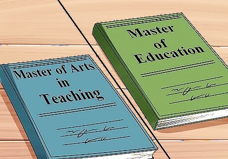 Consider which master's degree you would want. To become a teacher, there are two options: Master of Arts in Teaching and Master of Education. Both offer different programs and are geared for slightly different career paths. Master of Arts in Teaching focuses on a teacher's performance in the classroom. It offers a lot of hands on experience teaching and working with students. You will also be able to advance your expertise in the particular area you want to focus on. Master of Education focuses more on the education system itself. People with Master of Education degrees can and do stay in the classroom for the remainder of their careers, but this degree is also appropriate for people who want to advance in the field. Aspiring principals and administrators would benefit from this degree.