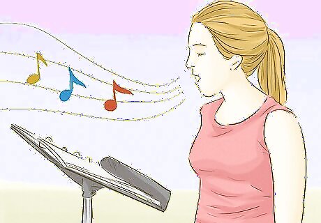 Study music. Pursue a college degree in music, preferably from a performing arts school or a program that offers singing and vocal work, as well as teaching and education classes. Learn music theory and how it applies to sounds. Learn how to read notes, in a class, or creatively using online apps. Take yourself out to musical concerts and train yourself to listen to harmony, tone and other important elements of music. Become familiar with a variety of singing voices and vocal styles. Learn to play an instrument, like the piano or guitar, to use as a guide to study notes and pitch. Start with playing simple notes or songs, like Mary Had A Little Lamb to learn the keys. Practice matching your voice to the musical keys. Use online tutorials, or take lessons from a professional, if needed.