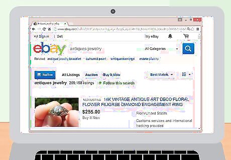 Deal at shows or flea markets. You can sell your inventory at a more low-cost venue like a flea market or antique show. This will only require you to pay the cost of renting a table. You may have to deal with hagglers, but if you choose a venue with other antique dealers you may find a great clientele base. Think about selling online. One advantage of selling in modern times is the availability of online markets like E-Bay. List your products online to reach a wider audience. Invest in a good camera so that you can provide high quality, detailed photos of your products.