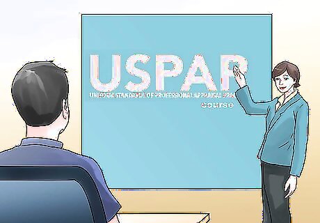 Take the Uniform Standards in Professional Appraisal Practices (USPAP) course. No matter what type of appraiser you become, the USPAP will typically be required by your employer or certification agency before you can get a job. The USPAP is a 15 hour course and exam offered by a number of different organizations, including the American Association of Appraisers and the Appraisal Institute. This course can cost between $350 and $500 USD depending on where you take it. This typically includes the exam. Additional courses in Basic Appraisal Principles and Basic Appraisal Procedures are also offered by most appraisal organizations and foundations. These may be required by some states for certification.