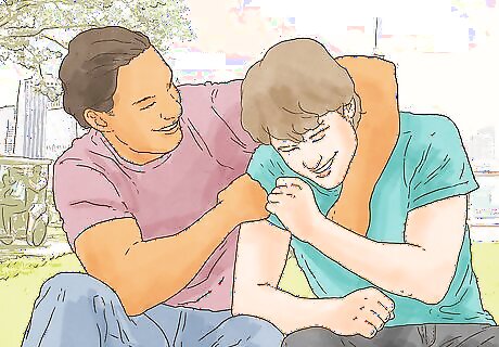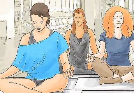 Meditate with a friend. If you want to meditate but have difficulty finding time or motivation to do so, enlist the help of a friend. You can use an audio or video format to guide the meditation if you’d like. This way, you can be accountable for doing the meditation and have someone to process your thoughts and feelings with afterward. Find one day each week where you can meditate together. Find a space that feels comfortable and is convenient for both of you.